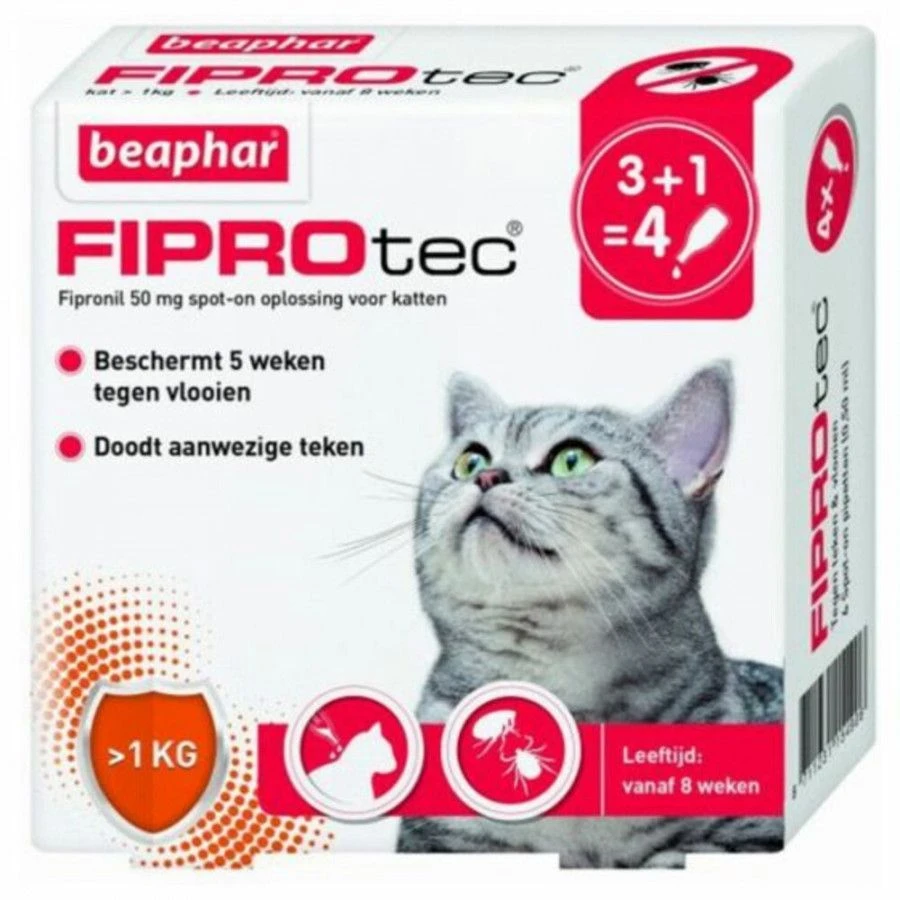 Beaphar Fiprotec Cat Anti vlooien en tekenmiddel 3+1 pip >1kg