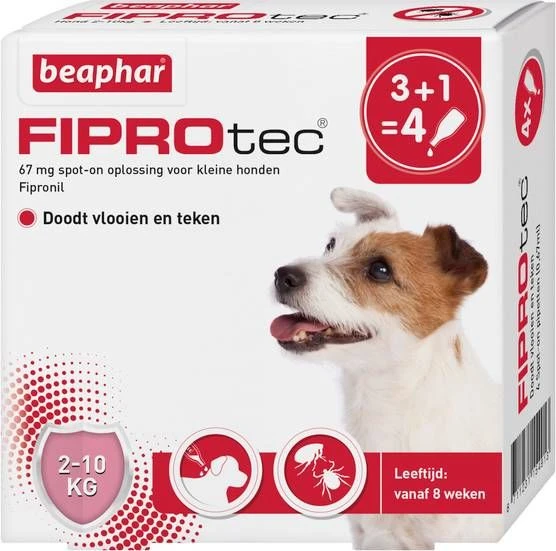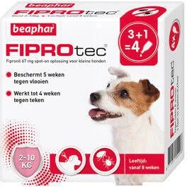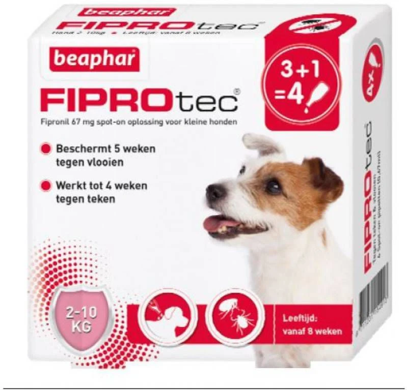 Beaphar Fiprotec Dog 3+1 pip Anti vlooien en tekenmiddel 2 10kg 2 10kg direct bestellen in onze webshop! FiproTec is een effectief middel ter bestrijding van vlooien en teken. 1 pipet beschermt uw hond tot 5 weken tegen vlooien en tot 4 weken tegen teken. Geschikt voor honden vanaf 8 weken en een gewicht van 2 tot 10kg.. Alle Beaphar voor uw Hond uit voorraad leverbaar!.