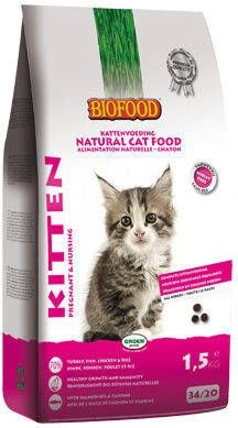 Biofood Kattenvoer KittenBiofood Kitten is hoogwaardige volledige natuurlijke kattenvoeding die speciaal ontwikkeld is voor kittens tot 12 maanden en zwangere en/of zogende katten.