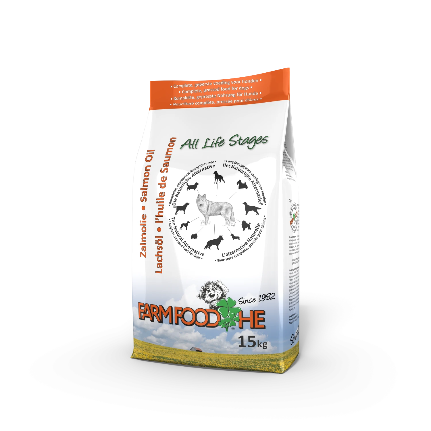 Farm Food HE hondenbrokken is een zeer hoogwaardige ‘High Energy’ koudgeperste voeding voor elke hond, ongeacht leeftijd, activiteit of ras. Dit noemen we het ‘All Life Stages’-concept en is gebaseerd op het gegeven dat de spijsvertering bij honden nog steeds gelijk is aan die van hun voorouder, de wolf. In de natuur eten wolven en andere hondachtigen, ongeacht hun leeftijd van hetzelfde prooidier; jonge en drachtige dieren eten meer en oudere dieren eten minder. Dit alles draagt er onder andere aan bij dat pups zeer gelijkmatig groeien zonder vervelende groeipijnen.