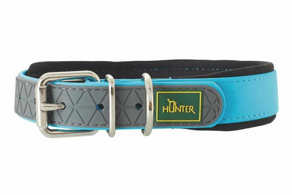 Hondenhalsband Convenience Comfort Turquoise Deze strakke halsband is gemaakt van stevig kunststof en is door de strakke vorm en de grote keuze aan kleuren geschikt voor elke smaak. Het onderhoudsvriendelijke materiaal maakt deze mooie halsband absoluut geschikt voor dagelijks gebruik. Het speciaal door Hunter ontwikkelde kunststof is bestand tegen scheuren, duurzaam en waterbestendig. Voor extra comfort voor de hond, is de halsband gevoerd met zacht neopreen. U kunt de halsband gewoon met water afspoelen als de halsband vies is geworden. De kunststof is vergelijkbaar met Biothane® en heeft de volgende eigenschappen: Duurzaam Sterk Vrijwel onderhoudsvrij Kleurvast Vochtwerend Beschimmelt niet Neemt geen vocht op Scheurt niet Simpel te reinigen met water Behoudt de vorm Bijna slijtvrij Kleur: turquoise. Bepaal de juiste maat :