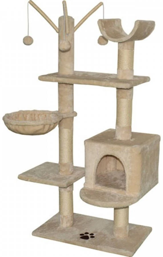 Krabpaal Granada- Afmeting: 71 x 46 x 130 cm.Deze krabpaal heeft alles wat een krabpaal moet hebben. Ligplaatsen, krabmogelijkheden en een playtop. De neutrale beige kleur zorgt ervoor dat deze in ieder interieur past.De krabpaal is zeer geschikt voor kittens of de gewone huiskat. De krabpaal is compact zonder dat het iets in functie verliest.