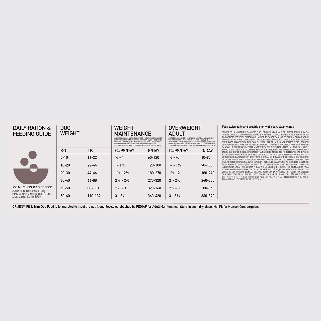 Orijen Whole Prey Fit & Trim Hond 2kg -Dierenwinkel Orijnen Fit Trim Adult Dog Dosage 1