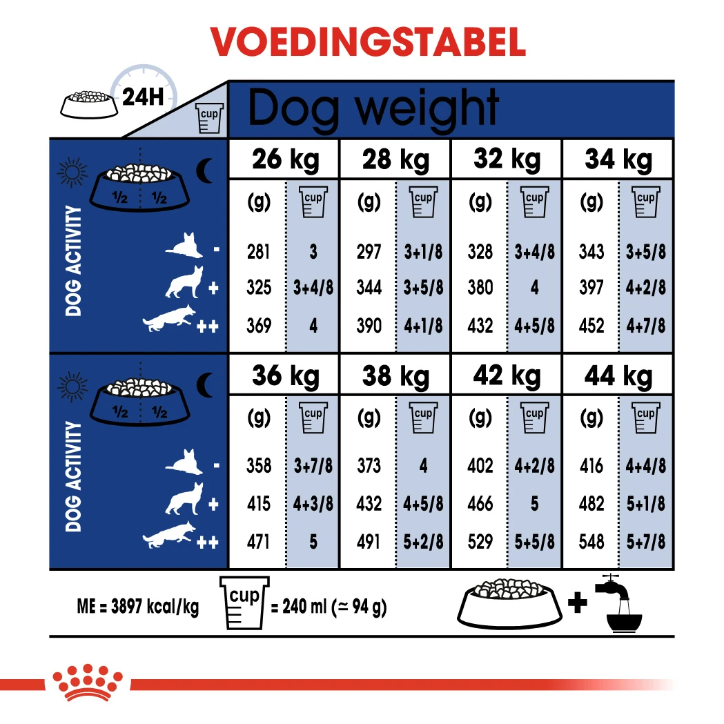 Voor volwassen honden van grote rassen (gewicht van 26 tot 44 kg) van 15 maanden tot 5 jaar. Beschikbaar in 4kg, 10kg en 15kg.