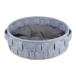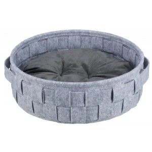 Trixie Mand Lennie 40cm Trixie Mand Lennie is een moderne mand voor jouw kat of kleine hond. Heerlijk wegdromen: of het nu om een korte pauze of een diepe slaap gaat met Mand Lennie van Trixie kan jouw kat heerlijk ontspannen en uitrusten. Het gevlochten vilt maakt de mand ook nog eens mooi om te zien. Producteigenschappen: Inclusief kussen met een pluche bekleding en polyestervlies vulling Isolerend en vuil afstotend Materiaal: vilt Diameter: 40 cm Geschikt voor katten en kleine honden